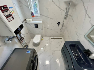 Az ingatlan utcafrontról külön kapun közelíthető meg, a lakás bejárata egy 24 nm nagyságú térkővel burkolt telekrészről van, ami igény szerint kocsibeállóként is használható.
